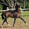 阿拉伯马是奇蹄目马科马属哺乳动物。体格不算大,体质干燥结实。头形轻俊干燥,前额宽广,向鼻端逐渐变细,面部正直或稍凹;耳短小、竖立,眼大有神,两眼距离宽,鼻孔大,下颚深而广;颈长而形美;肩、系较斜,…全部>>
