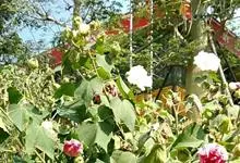 木芙蓉,锦葵科木槿属落叶灌木或小乔木。小枝上有细绒毛;叶片为卵状心形,托叶为披针形,常早落;花单生,花萼为钟形,花冠初为白色或淡红色,后逐渐变为深红色;果实为扁球形,有淡黄色的毛附着。花期8到10月。…全部>>