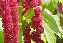 千穗谷一年生草本;茎绿色或紫红色,分枝,无毛或上部微有柔毛。叶片菱状卵形或矩圆状披针形,具凸尖,基部楔形,无毛,上面常带紫色;叶柄无毛。圆锥花序顶生,直立,圆柱形,不分枝或分枝,由多数穗状花序形成,…全部>>