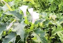 曼陀罗,茄科曼陀罗属一年生大型草本植物,全株光滑。有臭气;叶呈广卯形,边缘具不规则波状浅齿裂;花单生于枝杖间或叶腋,直立,有短梗;花萼是筒状裂片三角形,颜色为白色或淡紫色;果实为蒴果卵状,…全部>>