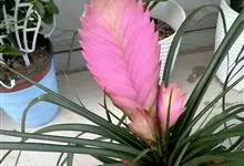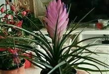 紫花凤梨,是凤梨科铁兰属的多年生草本植物。株高不及30厘米;叶片拱状线形,叶丛族生于短缩茎上,斜出或横生,叶为绿色,基部具有紫褐色彩晕;短穗状花序,总苞片粉红色,呈扇形;小花青紫色,…全部>>