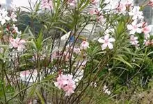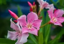 夹竹桃,又名红花夹竹桃、欧洲夹竹桃,是夹竹桃科夹竹桃属的一种常绿直立大灌木,枝条灰绿色,含水液。叶披针形,3叶轮生。聚伞花序顶生,花冠粉红至深红色,花冠漏斗状,有特殊香味。蓇葖果,圆柱形。种子长圆形,…全部>>