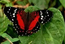 优红蛱蝶:翼展4.5-12厘米。是一种美丽的蝴蝶。色彩鲜艳,花纹相当复杂。前足相当退化,短小无爪。前翅R脉5条,常共柄。卵呈半圆球形。幼虫头上常有突起,体节上有枝刺,腹足趾钩1至3序中列式。蛹为垂蛹。全部>>