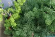 蓬莱松是天门冬科、天门冬属多年生丛生草本植物。宿存,圆柱形肉质根,纵截面为绿色和表面灰色。植株高可达3米。茎呈圆柱形或近四边形,底部木质化,具有灰色或灰褐色。幼嫩的茎在每个节上都被紫绿色鳞片包,…全部>>