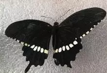 玉斑凤蝶Papilio helenus 别名白纹凤蝶,是凤蝶科凤蝶属美凤蝶亚属大型种类。雌雄同型;体翅皆黑色,后翅正面中室外有3个并列的白色斑,亚外缘有1列模糊的新月形红色斑,…全部>>