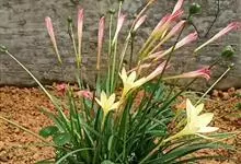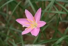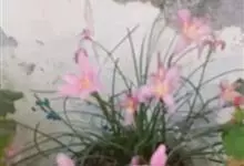 小韭兰学名韭菜莲又名风雨花、菖蒲莲、红玉帘和旱水仙,多年生草本,鳞茎卵球形,基生叶常数枚簇生,线形,扁平,花单生于花茎顶端,下有佛焰苞状总苞,花玫瑰红色或粉红色,蒴果近球形,种子黑色,花期夏秋。韭莲…全部>>