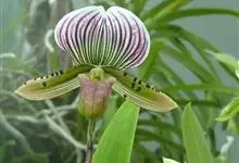彩云兜兰是兰科、兜兰属的地生植物,是国家一级保护植物。地生。叶基生,数枚至多枚,带形、革质。花葶从叶丛中长出,花苞片非叶状;子房顶端常收狭成喙状;花大而艳丽,有种种色泽;中萼直立,花粉粉质或带粘性,…全部>>