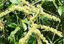 反枝苋是苋科苋属的一年生草本植物。株高达1米;茎密被柔毛;叶菱状卵形或椭圆状卵形,先端锐尖或尖凹,两面及边缘被柔毛,下面毛较密;穗状圆锥花序,顶生花穗较侧生者长;花被片长圆形或长圆状倒卵形,…全部>>