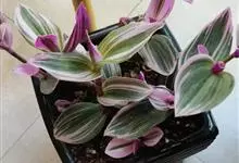 吊竹梅是鸭跖草科紫露草属的多年生草本植物;茎半肉质,柔弱披散至悬垂;叶椭圆形至长圆形,无柄,先端急尖至渐尖,基部鞘状抱茎,叶面紫绿色而杂有银白色,叶背紫色,全缘;花聚生于顶生叶状苞内,…全部>>