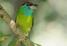 金喉拟啄木鸟,是须鴷科、拟啄木鸟属的鸟类。金喉拟啄木鸟为小型鸟类,体长19-24厘米。额深红色,头顶金黄色,后枕具一大块深红色斑,耳羽和头侧银灰色,上体草绿色,颏和上喉金黄色,下喉淡银灰色,…全部>>