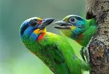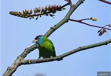 绿拟啄木鸟为鴷形目,须科,拟啄木属的一种。形较大拟啄木鸟略小,体长约260mm。头、颈及胸浅褐而具淡黄白色条纹;喉几为淡黄白色;身体余部草绿色。虹膜棕褐色,眼周裸露部黄色;嘴峰角黄色;跗跖和趾角黄…全部>>