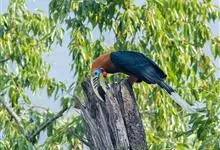 蓝喉拟啄木鸟,是须鴷科、拟啄木鸟属的鸟类。蓝喉拟啄木鸟为小型鸟类,体长20-23厘米。前额至头顶鲜红色,其上有一宽阔的黑色横带,将此红色分为前后二块;头侧、颏、喉蓝色,下喉两侧各具一红色点斑。…全部>>