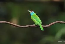 黑眉拟啄木鸟,为须䴕科、拟啄木鸟属的小型鸟类,体长20-25厘米,外形和金喉拟啄木鸟非常相似,但具粗著的黑色眉纹,头侧和耳覆羽以及下喉蓝色而不为银灰色,前颈两侧各有一块鲜红色斑。全部>>