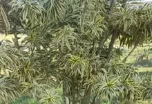 龙血树 L.),天门冬科龙血树属常绿乔木,其树形高大,分枝,茎皮灰色,幼枝有环状叶痕;叶簇生于茎顶部,呈剑形,深绿色;圆锥花序,花白色并带绿色,花丝丝状;浆果橙色,球形;花期3-5月,果期7-8月。…全部>>