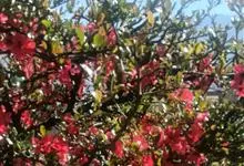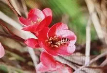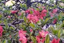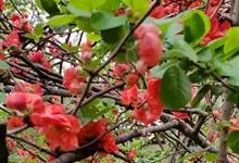 贴梗海棠Nakai)是蔷薇科、木瓜海棠属植物。落叶灌木,高达2米,枝条直立开展,有刺。叶片卵形至椭圆形,稀长椭圆形,长3-9厘米,宽1.5-5厘米。花先叶开放,3-5朵簇生于二年生老枝上。…全部>>