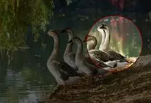 灰雁:体长70-90厘米,翼展147-182厘米,体重2.5-4千克,寿命17年。体大而肥胖。嘴、脚肉色,上体灰褐色,下体污白色,飞行时双翼拍打用力,振翅频率高。脖子较长。腿位于身体的中心支点,…全部>>