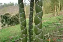 龟甲竹 Mitford),竿高达20余米,粗者可达20余厘米,幼竿密被细柔毛及厚白粉,箨环有毛,老竿无毛,并由绿色渐变为绿黄色;基部节间甚短而向上则逐节较长;竿环不明显,低于箨环或在细竿中隆起。…全部>>