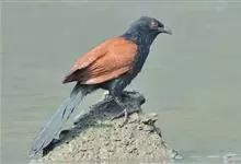 褐翅鸦鹃,是鹃形目鸦鹃科鸦鹃属的鸟类。褐翅鸦鹃的身体为黑色;头颈和胸带蓝紫色金属光泽并具黑亮的羽干纹,下胸至腹部泛金属绿光泽;两翼和肩部为棕栗色,外侧飞羽具暗色羽端,尾羽闪铜绿色光泽;虹膜赤红色,…全部>>