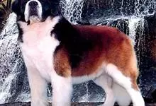 圣伯纳犬,别名巴里汉德,属于大型工作犬,肩高约65~90厘米,体重约50~90千克。圣伯纳犬身体强壮,被毛红褐色和白色相间,头圆而宽大。颈部强壮,胸宽深,背直。前肢长直,腕关节略前倾,后肢腿骨粗壮,…全部>>