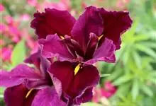 花菖蒲:是玉蝉花的变种。多年生宿根挺水型水生花卉。根状茎短而粗,须根多并有纤维状枯叶梢,叶基生,线形,叶中脉凸起,两侧脉较平整。花葶直立并伴有退化叶1-3枚。花大直径可达15厘米。外轮三片花瓣呈椭圆…全部>>