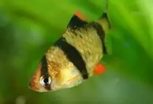 虎皮鱼又名四间鱼、品品鱼等。隶属鲤形目鲤科,热带淡水鱼类。其体高,侧扁略呈卵圆形。体呈浅黄色,背部为金黄色,背鳍、腹鳍、尾鳍和吻部均为鲜红。鱼体上有四条黑色粗带状竖纹,第一条竖纹通过眼部,…全部>>
