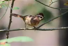 白颊噪鹛是雀形目噪鹛科噪鹛属鸟类,又称土画眉、小画眉、小噪鹃。成鸟额至头顶栗褐色,长眉纹、眼先和颊纹棕白色,眼后至耳羽深褐色,…全部>>