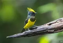 冕雀:共有4个亚种。体长20-21厘米,体重34-49克。具蓬松的黄色长型冠羽。雌鸟似雄鸟,但喉及胸深橄榄黄色,上体沾橄榄色。不会被误认的体大的黄色及黑色山雀。混群栖于原始林及次生林的林冠层,…全部>>