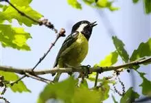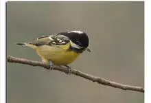 黄腹山雀是雀形目山雀科山雀属鸟类。虹膜褐色或暗褐色;嘴蓝黑色或灰蓝黑色;头、喉胸斑黑色,颊斑、颈后斑白色;上体蓝灰色,腰银白色;翼具两排白色点斑;下胸、腹鲜黄色;尾黑色,…全部>>