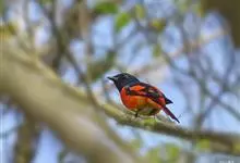 灰喉山椒鸟:共有8个亚种。体长18-22厘米。雄鸟头部和背亮黑色,腰、尾上覆羽和下体朱红色,翅黑色具一大一小的两道朱红色翼斑。中央尾羽黑色,外侧尾羽基部黑色,端部红色。…全部>>