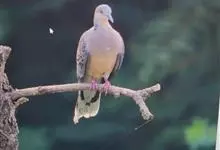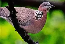 珠颈斑鸠,别名花斑鸠、珍珠鸠、花脖斑鸠、鸪鹪,是鸠鸽科副斑鸠属鸟类。体型中等,体长27~34cm,体重120~205g,雌鸟和雄鸟羽色相似,但雌鸟不如雄鸟羽色亮泽。珠颈斑鸠前额至头顶羽色稍淡,…全部>>
