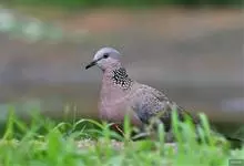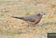 珠颈斑鸠,别名花斑鸠、珍珠鸠、花脖斑鸠、鸪鹪,是鸠鸽科副斑鸠属鸟类。体型中等,体长27~34cm,体重120~205g,雌鸟和雄鸟羽色相似,但雌鸟不如雄鸟羽色亮泽。珠颈斑鸠前额至头顶羽色稍淡,…全部>>