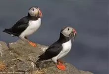 北极海鹦是海雀科的一种海鸟,体长26-38厘米,体重约490克。冠为黑色,脸颊灰色,腹部白色。喙大,为红黑色,腿为橙色,与其羽毛成为鲜明对比。冬天在海上蜕毛,失去一些鲜艳的脸部特征。成年雄性和雌性的…全部>>