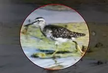 小黄脚鹬,是丘鹬科鹬属的一种动物。小型涉禽,体长23-25厘米。嘴较细直、黑褐色。脚较长、橙黄色。夏羽头、颈、胸具褐色纵纹,眼周有显著的白色圈,在暗色的头上甚为醒目。肩、背、三级飞羽黑色具白色斑点。…全部>>