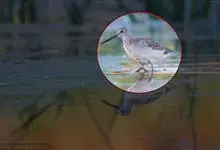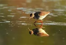 红脚鹬:体长28厘米,上体褐灰,下体白色,胸具褐色纵纹。飞行时腰部白色明显,次级飞羽具明显白色外缘。尾上具黑白色细斑。虹膜黑褐色,嘴长直而尖,基部橙红色,尖端黑褐色。脚较细长,亮橙红色,…全部>>