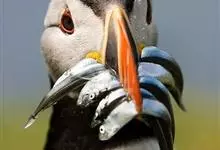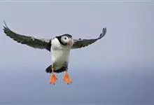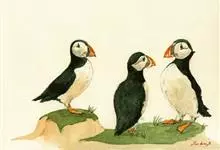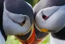 北极海鹦是海雀科的一种海鸟,体长26-38厘米,体重约490克。冠为黑色,脸颊灰色,腹部白色。喙大,为红黑色,腿为橙色,与其羽毛成为鲜明对比。冬天在海上蜕毛,失去一些鲜艳的脸部特征。成年雄性和雌性的…全部>>
