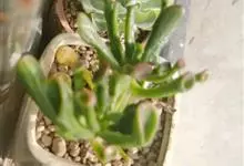 筒叶花月,是景天科青锁龙属的多年生草本植物。植株多分株,灌木状,茎较粗壮,圆柱形,表皮灰褐色;叶片肉质,互生,呈圆筒状,簇生于茎或分枝顶端,叶端呈斜截形,截面为椭圆形;花呈星状,淡白色;花期秋季。…全部>>