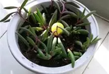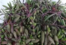 紫玄月是菊科厚敦菊属多年生肉质草本植物。蔓长30-60厘米;茎紫色;叶对生或互生茎上肉质,叶片细圆柱形,中间粗两端细稍弯曲;花序着生于叶腋,头状花序,舌状花黄色,管状花黄色;花期全年。…全部>>