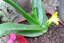 舌叶花 N.E.Br.),番杏科舌叶花属多浆植物。舌叶花的地上茎短粗柔软,不能直立,能萌生很短的分枝;叶片厚胖多浆,在短茎上呈两列状对生,排列紧密;叶片长舌状,基部抱茎,淡翠绿色,…全部>>