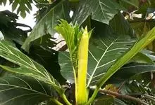 面包树 Fosberg)是桑科波罗蜜属植物。叶大,成熟之叶羽状分裂,表面深绿色,背面浅绿色;穗状花序单生叶腋,雄花序长圆筒形至长椭圆形或棒状;聚花果倒卵圆形或近球形;花期为3~5月,果期为7~10月。…全部>>