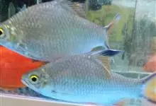 泰国鲫,Barbonymus schwanenfeldii ,鲤科高体鲃属的一种鱼类。喜欢在水的中层游动,行动敏捷、具群游性 体型似普通的鲫鱼,幼鱼没有色彩,而成鱼则银鳞闪闪,…全部>>
