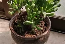 筒叶花月,是景天科青锁龙属的多年生草本植物。植株多分株,灌木状,茎较粗壮,圆柱形,表皮灰褐色;叶片肉质,互生,呈圆筒状,簇生于茎或分枝顶端,叶端呈斜截形,截面为椭圆形;花呈星状,淡白色;花期秋季。…全部>>