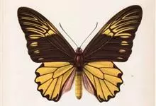 金裳凤蝶是凤蝶科、裳凤蝶属的动物。金裳凤蝶身体呈黑色,头、颈和胸侧有红毛,腹部有黑黄两色相间条纹,雄蝶前翅黑色,具黑天鹅绒光泽,各脉两侧灰白色,后翅金黄色,各室外缘有等腰三角形黑斑1枚,斑内侧有晕,…全部>>