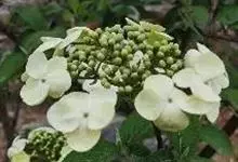 蝴蝶戏珠花 Miq.)是荚蒾科荚蒾属植物。落叶灌木,高达3米;当年小枝浅黄褐色。叶较狭,宽卵形或矩圆状卵形,有时椭圆状倒卵形。花序直径4-10厘米,外围有4-6朵白色、木型的不孕花。果实先红色后变黑色,…全部>>