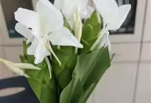 姜花又名野姜花。是姜科姜花属的多年生草本植物,茎高1-2米;叶片长圆状披针形或披针形,叶面光滑,叶背被短柔毛;穗状花序顶生,椭圆形,花芬芳,白色;蒴果卵状三棱形,微黄绿色;种子鲜红色,具橘红色的假种皮。…全部>>