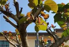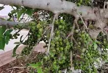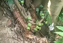 大果榕是桑科榕属的小乔木,株高可达10米;幼枝被柔毛;叶互生,宽卵状心形或近圆形;雄花无梗、匙形、花丝长,雌花生于雌株榕果内,子房白色;榕果簇生于树干基部或老茎短枝上、扁球形或陀螺形,…全部>>