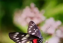 报喜斑粉蝶是粉蝶科斑粉蝶属的一种动物,又名红肩粉蝶、藤粉蝶等。幼虫群集性很强,从同一卵块孵化出的幼虫,幼龄期全部群集在一起取食,高龄幼虫常分散成小群。幼虫群集危害叶片,造成秃枝,严重者可将树吃成光杆,…全部>>
