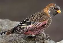 粉红腹岭雀:为燕雀科岭雀属的鸟类。体重25-34克,体长150-182毫米。是一种中等体型的深色岭雀。两翼及下体玫红色。东北亚种的雄鸟额、顶冠及脸灰;上背黄褐;上体深褐,…全部>>