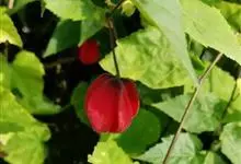 红萼苘麻是锦葵科、苘麻属常绿软木质灌木,叶绿色,长5-10厘米,心形,叶端尖,叶缘有钝锯齿,有时分裂,有细细的叶柄;叶互生,掌状叶脉;花单生于叶腋,具长梗,下垂;花萼红色,半套着大约4厘米长的花瓣,…全部>>