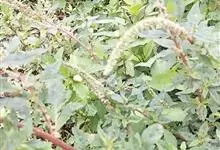 反枝苋是苋科苋属的一年生草本植物。株高达1米;茎密被柔毛;叶菱状卵形或椭圆状卵形,先端锐尖或尖凹,两面及边缘被柔毛,下面毛较密;穗状圆锥花序,顶生花穗较侧生者长;花被片长圆形或长圆状倒卵形,…全部>>