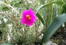 大花马齿苋:一年生草本,高10-30厘米。茎平卧或斜升,紫红色,多分枝,节上丛生毛。叶密集枝端,较下的叶不规则互生,叶片细圆柱形,无毛。花单生或数朵簇生枝端,直径2.5-4厘米,…全部>>